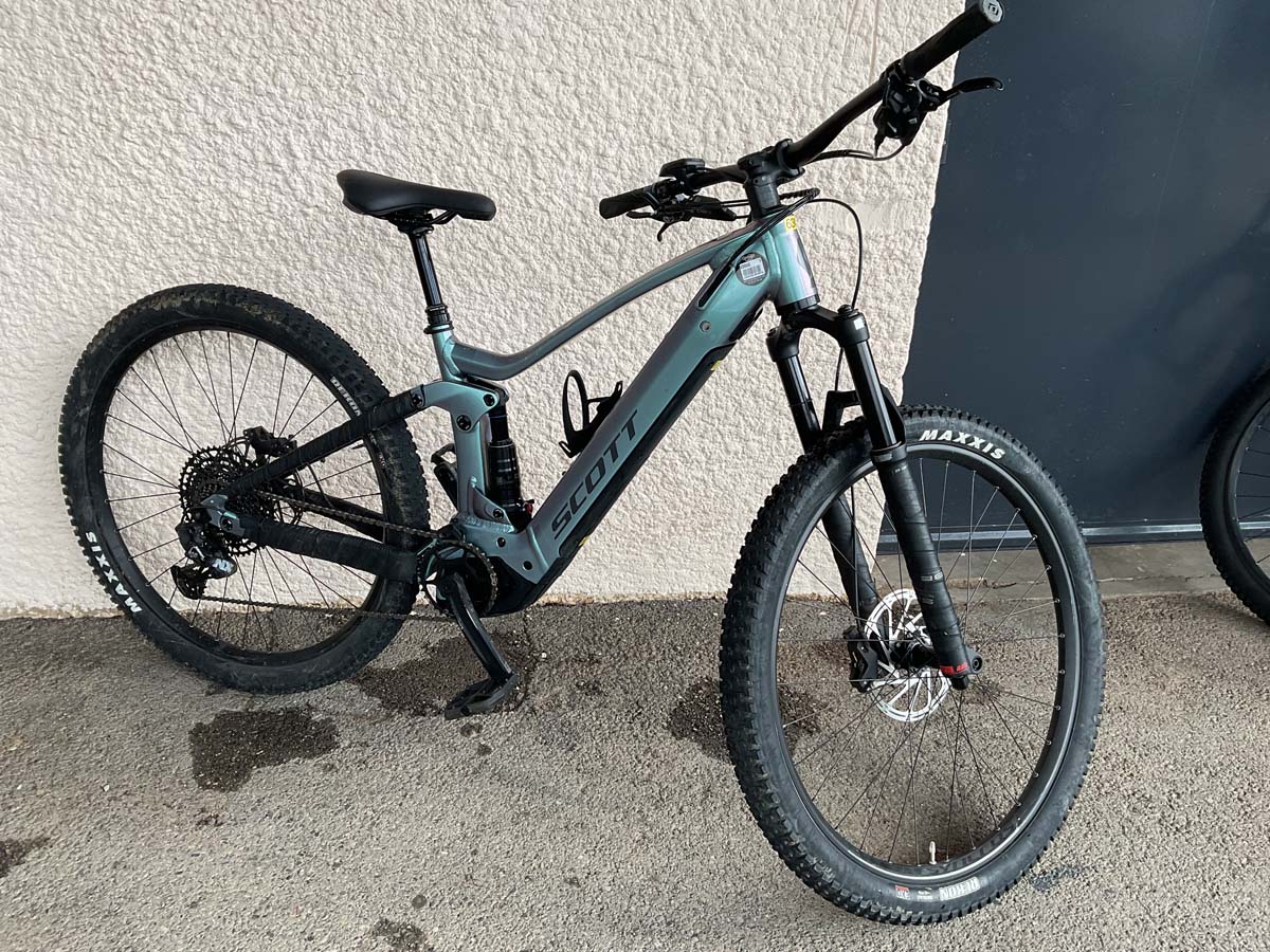 Freins à disque - Fourche et amortisseur selle 140 mm - Position Batterie : Cadre - Batterie amovible - Couleur gris - Poids 27 kg